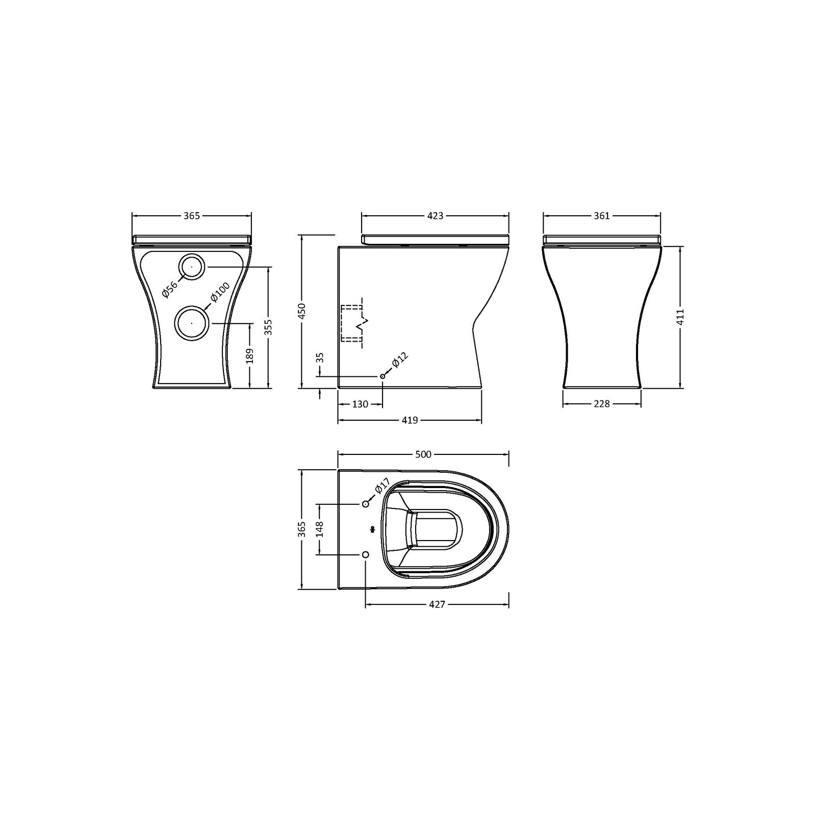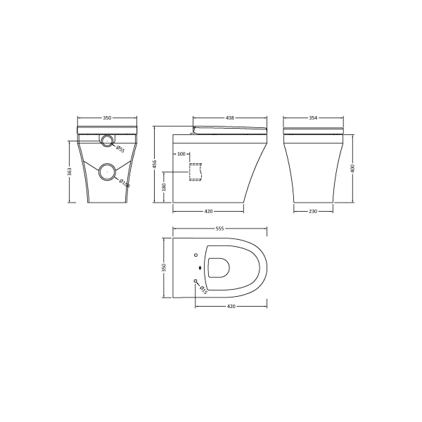 Square Rimless Back to Wall Pan & Seat Toilet
