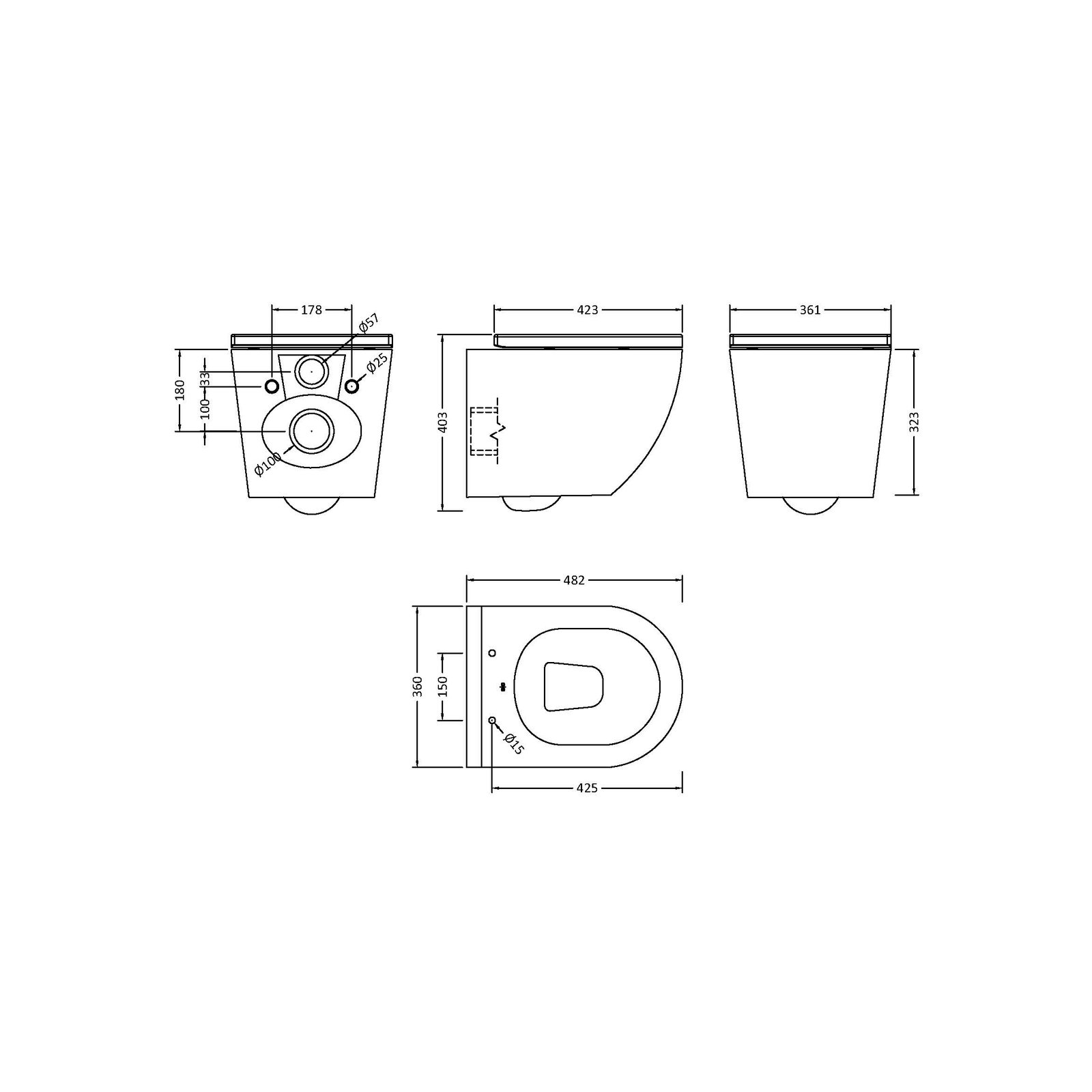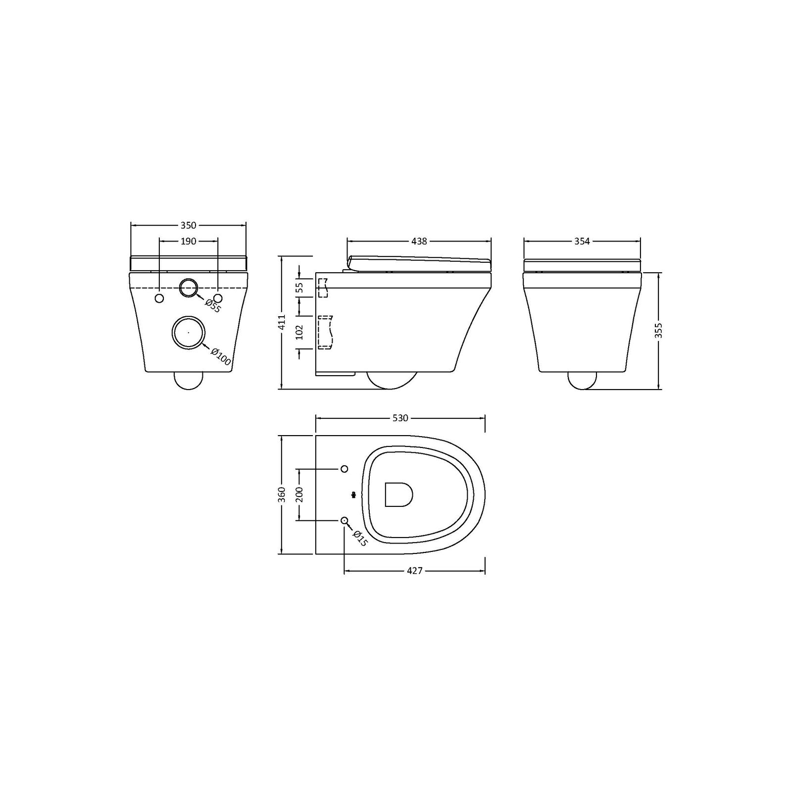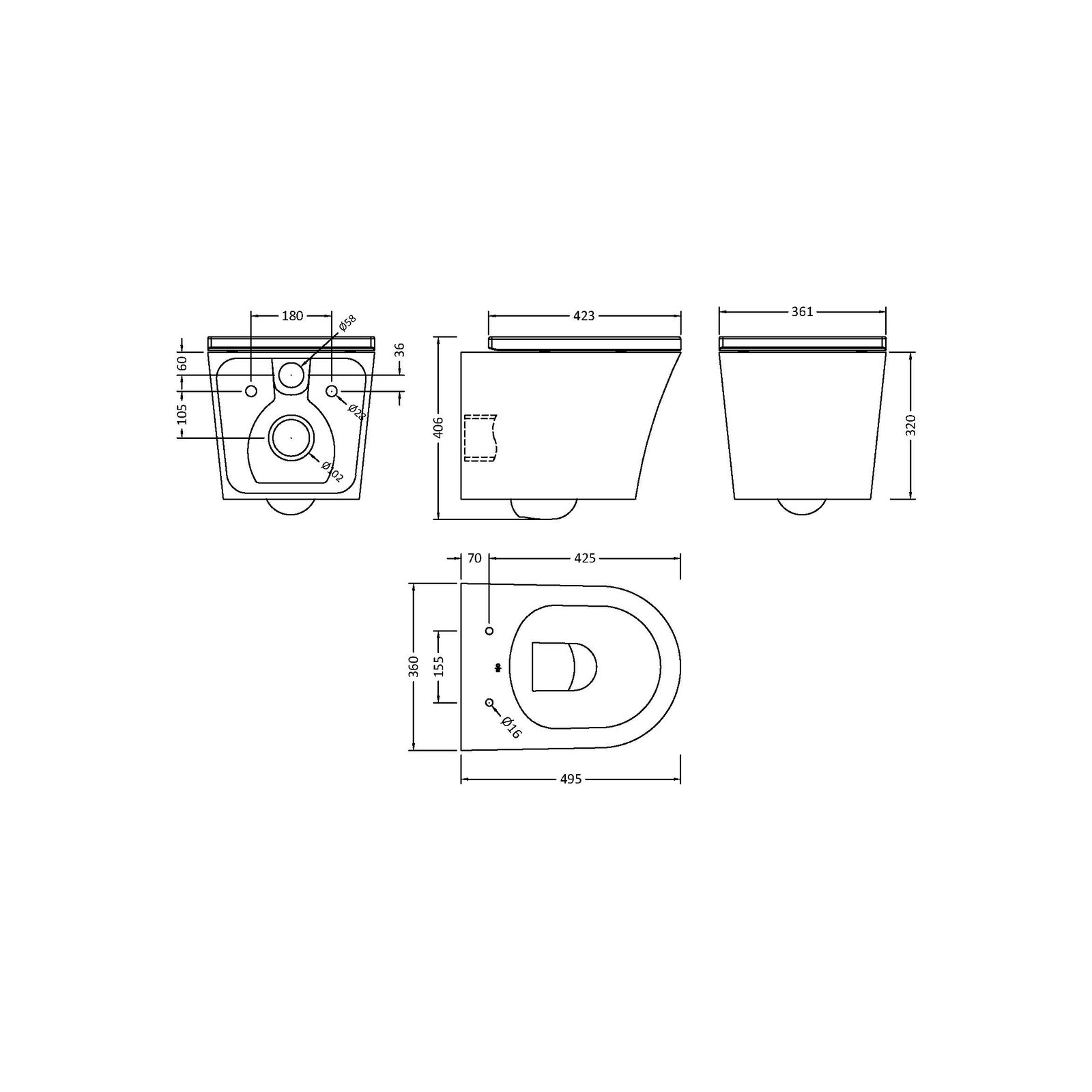 Square Rimless Wall Hung Pan & Seat Toilet